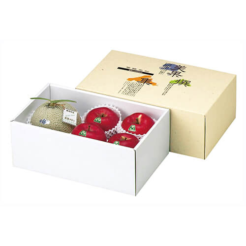 サイズが370×225×150mmのフルーツ用ギフトパッケージ。メロン6玉サイズ、9kgクラス1個とりんご28玉?32玉4?5個にちょうど良い大きさとなっています。さまざまな果物類のパッケージ、ギフト包装にいかがでしょうか。