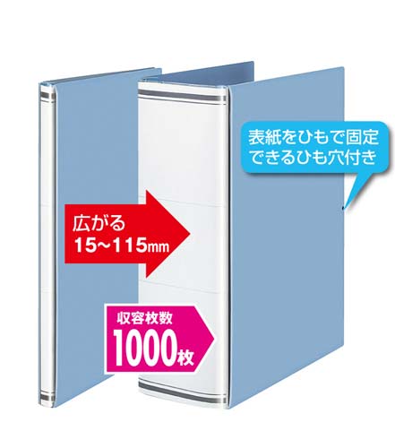 ●機能/表紙をひもで固定できるひも穴付き、背見出し紙は抜き差し可能