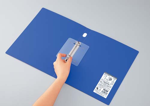 閲覧や抜き差しする頻度が多い書類に。片手で軽くつまむだけでラクに開けられる!下側のリングを閉じると、上側のリングも一緒に閉じます。収容枚数はそのままでスリムに!透明表紙タイプはこちら。