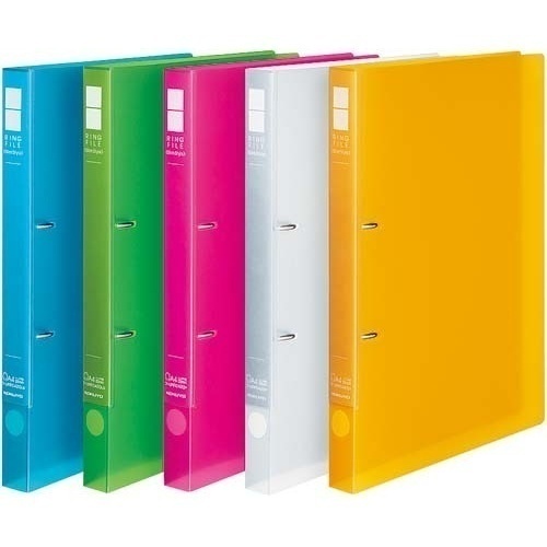 閲覧や抜き差しする頻度が多い書類に。片手で軽くつまむだけでラクに開けられる!下側のリングを閉じると、上側のリングも一緒に閉じます。収容枚数はそのままでスリムに!透明表紙タイプはこちら。