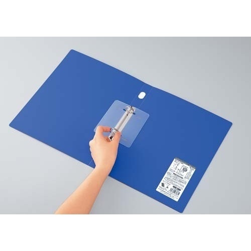 閲覧や抜き差しする頻度が多い書類に。片手で軽くつまむだけでラクに開けられる!下側のリングを閉じると、上側のリングも一緒に閉じます。収容枚数はそのままでスリムに!透明表紙タイプはこちら。