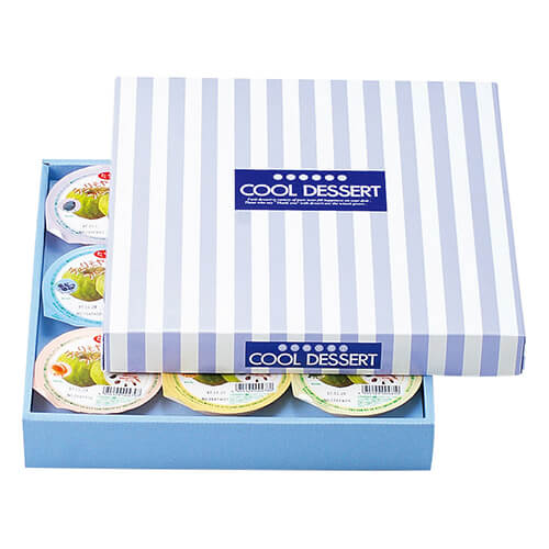 サイズが290×290×50mmのフルーツ用ギフトパッケージ。直径75×深さ35~46mmゼリーカップ9個にちょうど良い大きさとなっています。さまざまな果物類のパッケージ、ギフト包装にいかがでしょうか。
