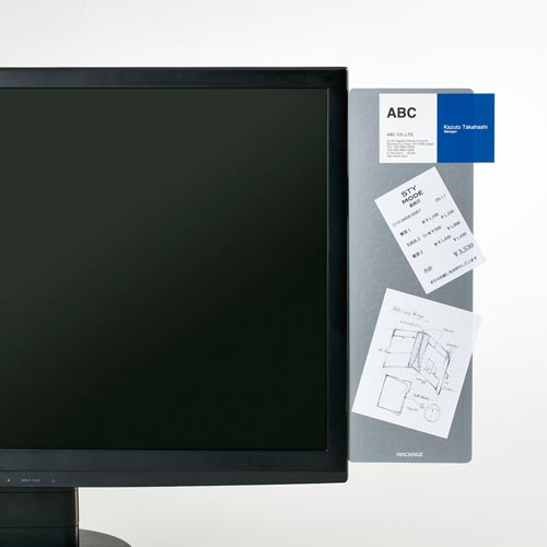 メモや名刺など頻繁に使うもの掲示できる電子吸着ボードラッケージ。省スペース設計の卓上タイプ。本体背面のマグネットによりスチール素材のパーティションなどにも取り付け可能です。