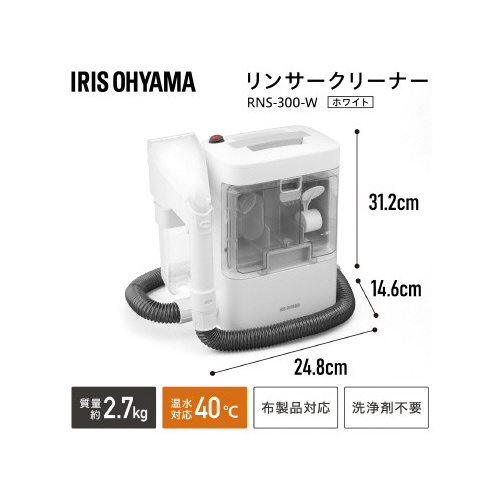 スプレーで水を吹きかけ汚れを浮かせ、浮かせた汚れを水と共に回収できるリンサークリーナーです。カーペットやソファ、車のシートなど、布製品にご使用頂けます。