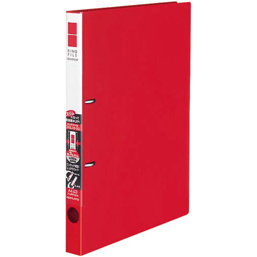 閲覧や抜き差しする頻度が多い書類に。片手で軽くつまむだけでラクに開けられる!下側のリングを閉じると、上側のリングも一緒に閉じます。収容枚数はそのままでスリムに!不透明表紙タイプはこちら。