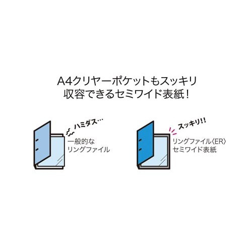 片手で簡単に開閉でき、手を挟んで痛い思いや怖い音のしない金属とじ具。棚から取り出しやすいフィンガーホール付き。表紙の裏に書類の仮保存に便利なポケット付き。