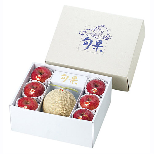 サイズが365×295×155mmのフルーツ用ギフトパッケージ。大玉メロンやブドウ1kg。りんご28玉・桃・オレンジ・フルーツゼリー・ジュース1Lなどにちょうど良い大きさとなっています。さまざまな果物類のパッケージ、ギフト包装にいかがでしょうか。