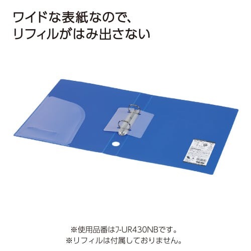 ワンタッチで開くリングを採用。リングを内側につまむとロックが外れラクに開きます。棚から取り出しやすいフィンガーホール付き。