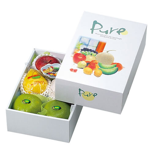 サイズが218×325×110mmのフルーツ用ギフトパッケージ。グレープフルーツ32個玉6個、りんご32玉8個にちょうど良い大きさとなっています。さまざまな果物類のパッケージ、ギフト包装にいかがでしょうか。