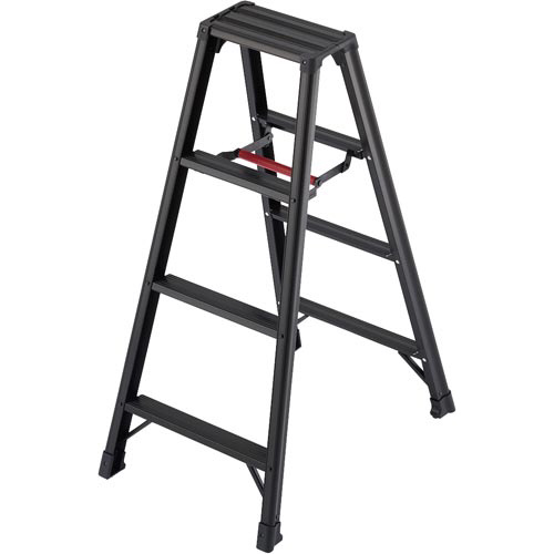 大人気の脚軽シリーズ。踏ざん裏に張りを持たせ、肩当たりを柔らかくさせた利用者に優しい設計。またワンタッチバー機能で、簡単に脚立の折りたたみが可能。とにかく軽くて丈夫な脚軽の進化版ブラック。