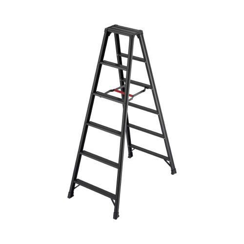 大人気の脚軽シリーズ。踏ざん裏に張りを持たせ、肩当たりを柔らかくさせた利用者に優しい設計。またワンタッチバー機能で、簡単に脚立の折りたたみが可能。とにかく軽くて丈夫な脚軽の進化版ブラック。