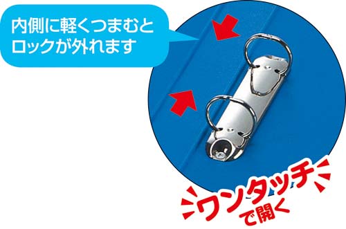 ワンタッチとじ具を採用した丸型リングファイル。ボード表紙のベーシックなタイプです。