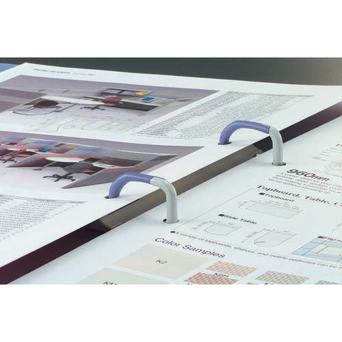 軽い力でワンタッチ操作できる、使いやすい樹脂製とじ具です。フック式のとじ具構造で、書類をしっかりとキープ。明るく清潔感のある5色の透明PP表紙。とじ具はD型リング状で、書類の閲覧もスムーズです。