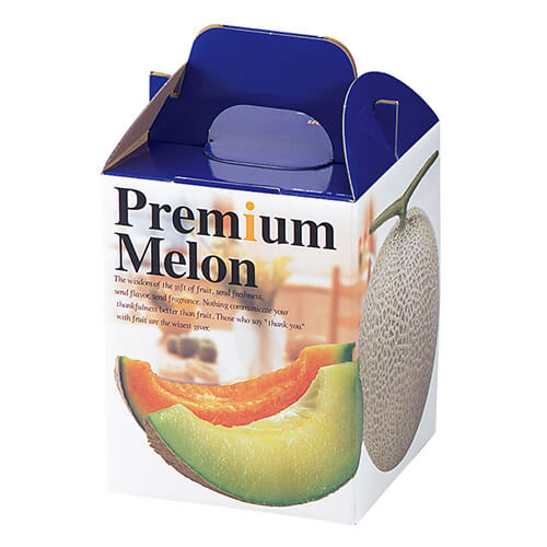 サイズが155×155×200mmのフルーツ用ギフトパッケージ。メロン5玉9kg1個にちょうど良い大きさとなっています。メロンのパッケージ、ギフト包装にいかがでしょうか。