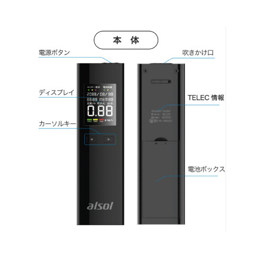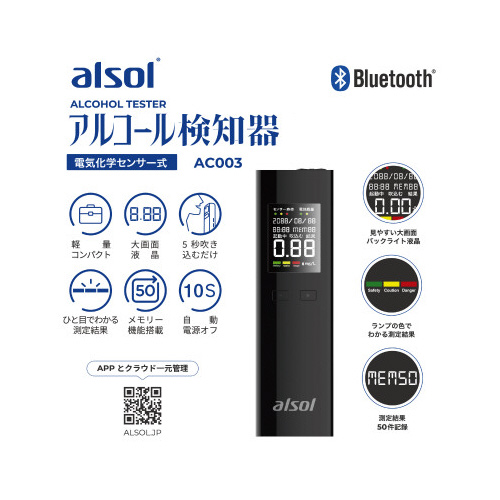 アルコール検知器協議会認定機器。精度良く簡単にアルコールチェック。約10000回(又は約3年)使用の長寿命。1年間の記録を専用クラウドに一括保存、ダウンロード可能。