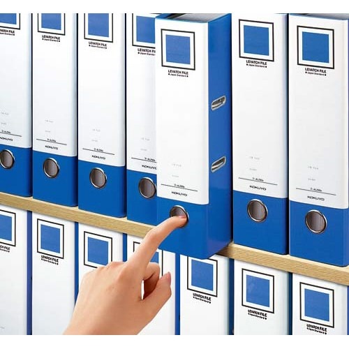リングとじ具をレバーでラクに開閉できるレバーアーチファイル。レバーには樹脂カバーが付いているから、手にやさしくて使いやすい。
