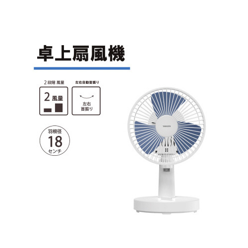 羽根径18cmの卓上式扇風機。風量調整2段階。軽量・コンパクト。