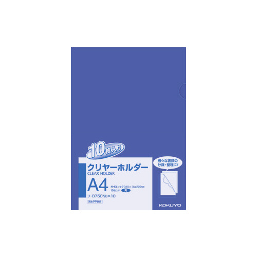 クリヤーホルダー、同色10枚パックです。目的別に分類でき、パンフレットなどの収容・保管の際に便利です。
