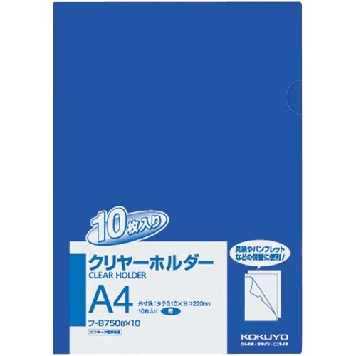 クリヤーホルダー、同色10枚パックです。目的別に分類でき、パンフレットなどの収容・保管の際に便利です。