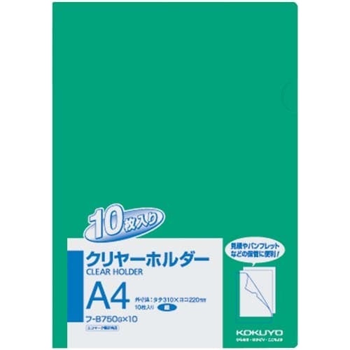 クリヤーホルダー、同色10枚パックです。目的別に分類でき、パンフレットなどの収容・保管の際に便利です。