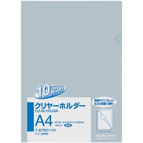 クリヤーホルダー、同色10枚パックです。目的別に分類でき、パンフレットなどの収容・保管の際に便利です。