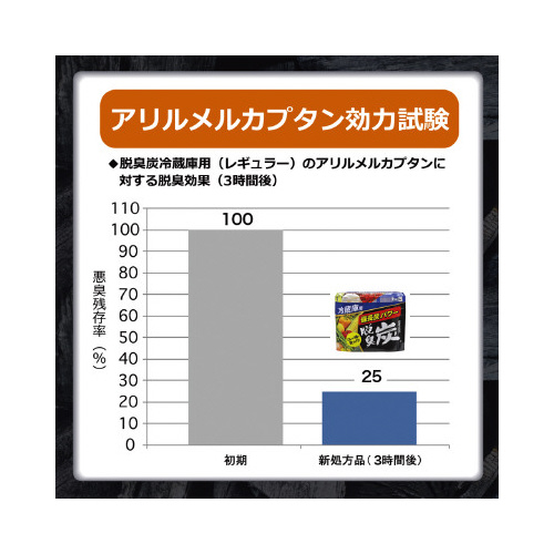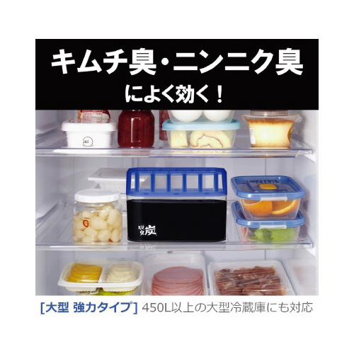 冷蔵庫のニオイを備長炭と活性炭のパワーが強力に脱臭。ゼリー状の炭が小さくなるので取替時期もわかります。