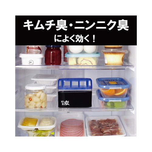 冷蔵庫のニオイを備長炭と活性炭のパワーが強力に脱臭。ゼリー状の炭が小さくなるので取替時期もわかります。