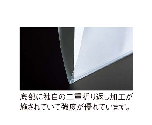 透明度が高いコクヨのクリヤーホルダー。底部に独自の二重折り返し加工が施されていて強度が優れています。