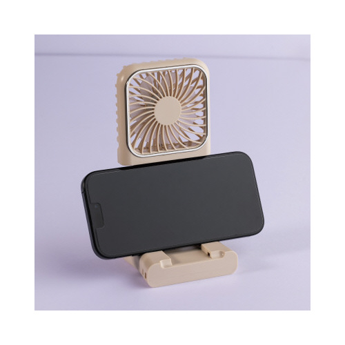 スマホスタンドとしても使える便利な5WAY(手持ち・置き型・スマホスタンド・首掛け・モバイルバッテリーとして)ハンディファン。風量調節5段階で自分好みに設定可能。