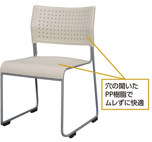 品質にも気を配った省スペースチェア。座面はPP樹脂で蒸れずに快適な座り心地です。