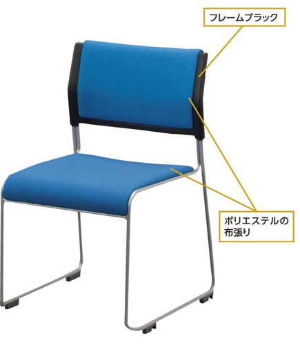 背座面ともに肌触りのよい布張りタイプ。背座面はポリエステルの布張りです。10脚までスタッキング可能です。