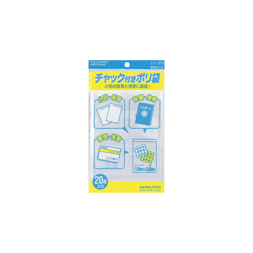 チャックで密閉できるので、防湿・防じん効果が高く、書類・カタログや部品・サンプルなどの保存や保管に最適です。ディスプレイや展示台に吊り下げ、展示ができる商品です。