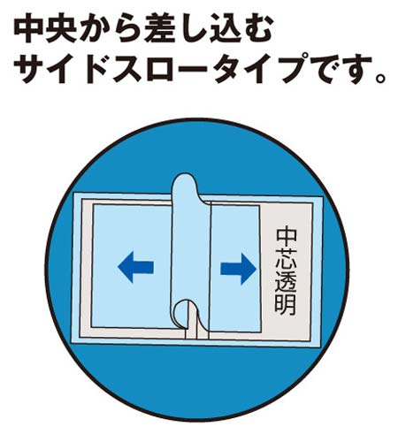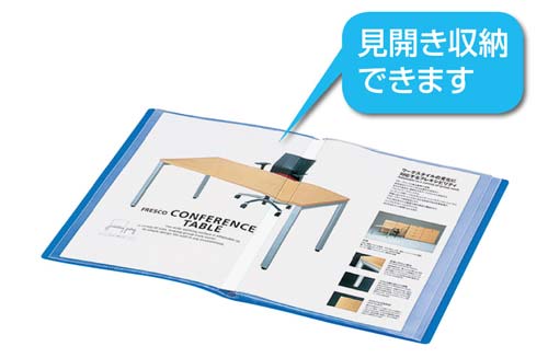 見開き収納可能。中央差し込みタイプの固定式クリヤーブック。A2サイズを見開きで収納できます。