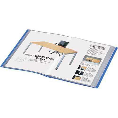 大型書類も見開きで収容できるサイドスロータイプクリヤーブックの廉価タイプ。倍のサイズの書類も見開きで収容でき、パンフレットなどの保管に最適です。