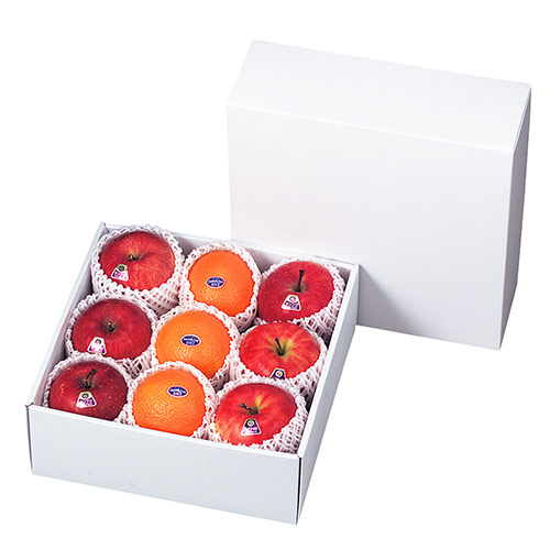 深さが11cmあり果物やボリュームのあるギフトセットに最適です。りんご28玉が9個入るサイズ感です。