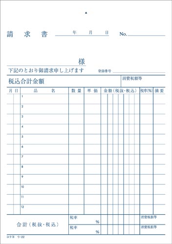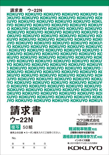 ●仕様/2枚複写/カーボン紙必要/消費税欄付・軽減税率対応/12行/50組
