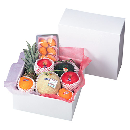 深さが11cmあり果物やボリュームのあるギフトセットに最適です。メロンやパイナップル、小玉すいかが入るサイズ感です。