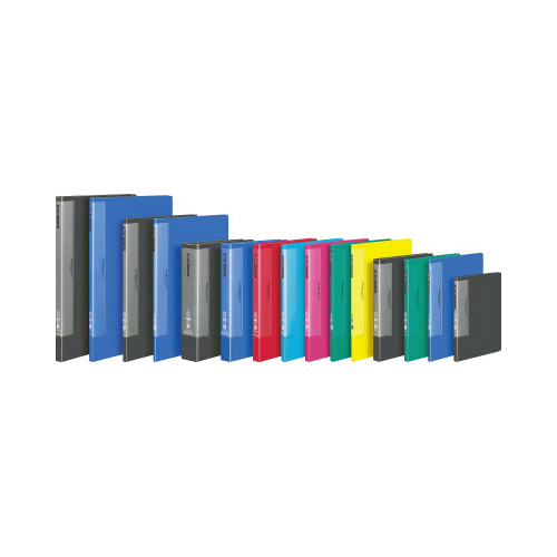 書類の出し入れがしやすいウェーブカットポケット採用の固定式クリヤーブック。棚などからのファイルの出し入れがしやすいフィンガーカット付きで便利。厚口のポケットなので耐久性にも優れています。