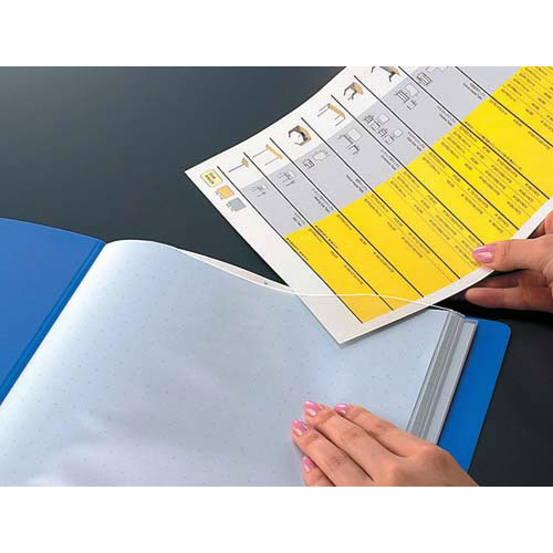 書類の出し入れがしやすいウェーブカットポケット採用の固定式クリヤーブック。棚などからのファイルの出し入れがしやすいフィンガーカット付きで便利。厚口のポケットなので耐久性にも優れています。