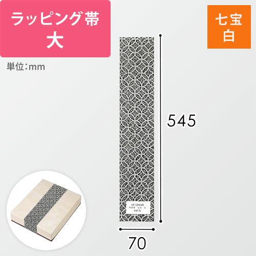 のし(熨斗)のように掛けて使えるラッピング用の帯。白色の和紙風で、七宝文様入りです。ちょっとしたお祝いやお持たせなど、特別感のあるギフトシーンの演出にいかがでしょうか。