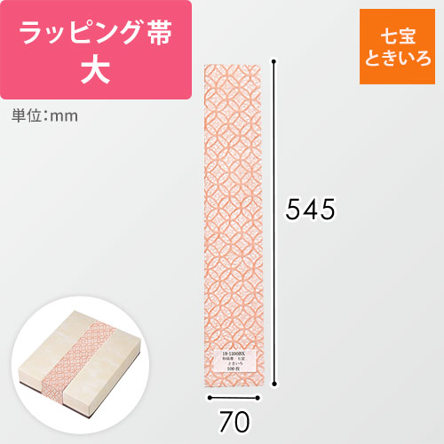のし(熨斗)のように掛けて使えるラッピング用の帯。とき色の和紙風で、七宝文様入りです。ちょっとしたお祝いやお持たせなど、特別感のあるギフトシーンの演出にいかがでしょうか。