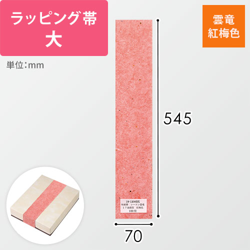 のし(熨斗)のように掛けて使えるラッピング用の帯。紅梅色の雲竜和紙風デザインです。ちょっとしたお祝いやお持たせなど、特別感のあるギフトシーンの演出にいかがでしょうか。
