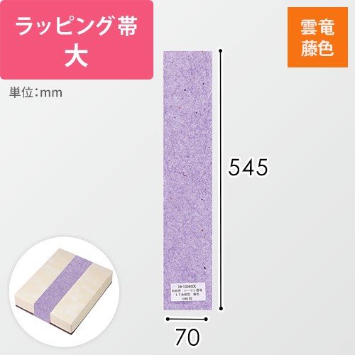 のし(熨斗)のように掛けて使えるラッピング用の帯。藤色の雲竜和紙風デザインです。ちょっとしたお祝いやお持たせなど、特別感のあるギフトシーンの演出にいかがでしょうか。