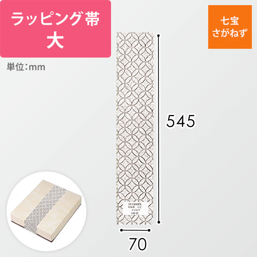 のし(熨斗)のように掛けて使えるラッピング用の帯。さがねず色の和紙風で、七宝文様入りです。ちょっとしたお祝いやお持たせなど、特別感のあるギフトシーンの演出にいかがでしょうか。