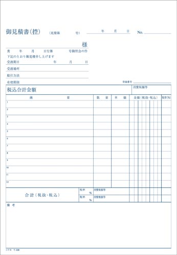 ●仕様/2枚複写/ノーカーボン/切/消費税欄付・軽減税率対応・明細記入欄付/12行/2穴(幅80mm)/40組