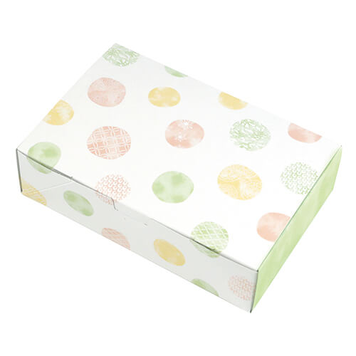 サイズが121×181×48mmのお菓子向けギフトパッケージ。ルミアカップ6個※別売にちょうど良い大きさとなっています。和菓子のサービス箱にいかがでしょうか。