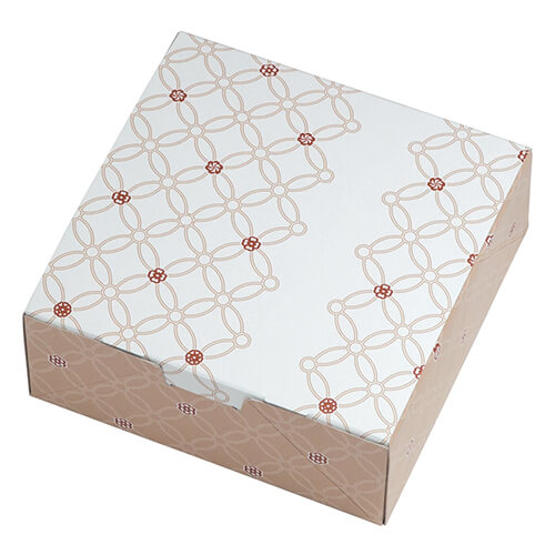 サイズが123×122×48mmのお菓子向けギフトパッケージ。和菓子の包装にピッタリ!和菓子類のパッケージ、ギフト包装にいかがでしょうか。