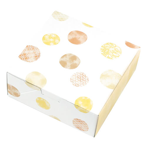 サイズが121×121×48mmのお菓子向けギフトパッケージ。和菓子の包装にピッタリ!和菓子類のパッケージ、ギフト包装にいかがでしょうか。