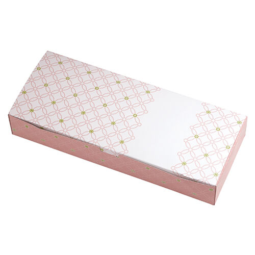 サイズが303×122×48mmのお菓子向けギフトパッケージ。ルミアカップ10個分の包装にちょうど良い大きさとなっています。和菓子類のパッケージ、ギフト包装にいかがでしょうか。