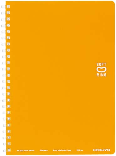 コクヨ独自開発の“新感覚やわらかリング”を採用したリングノートです。書くときリングに手が当たっても気にせず端まで美しく書ける。